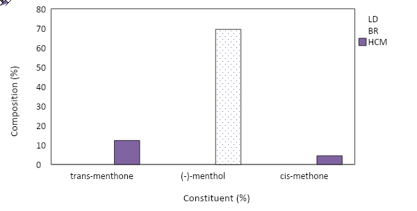 So sánh thành phần hóa học chính của bạc hà Nhật từ 3 vùng: Lâm Đồng (LD), Bà Rịa – Vũng Tàu (BR) và Tp. Hồ Chí Minh (HCM)