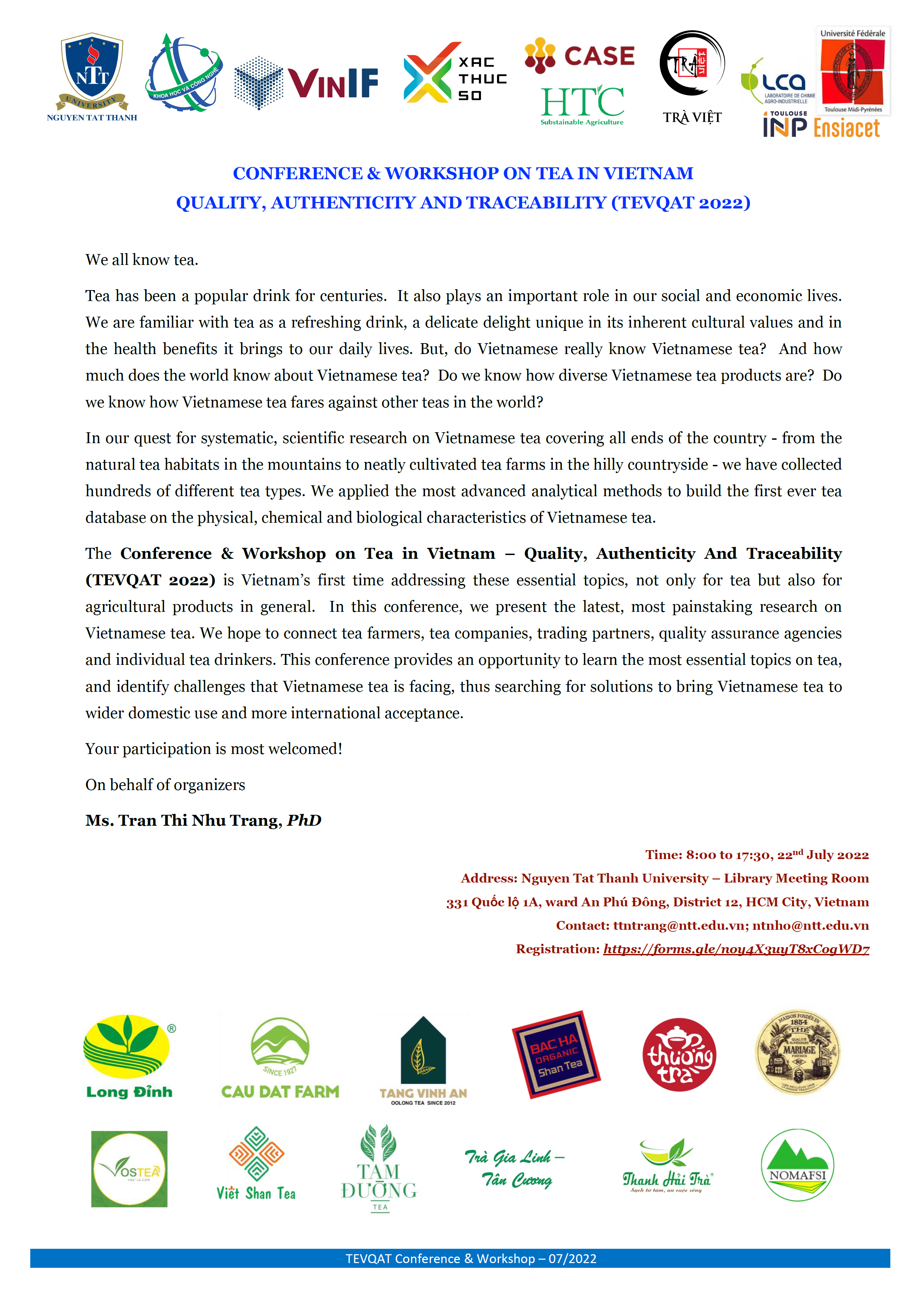THE FIRST CONFERENCE & WORKSHOP ON TEA IN VIETNAM QUALITY, AUTHENTICITY AND TRACEABILITY (TEVQAT 2022)