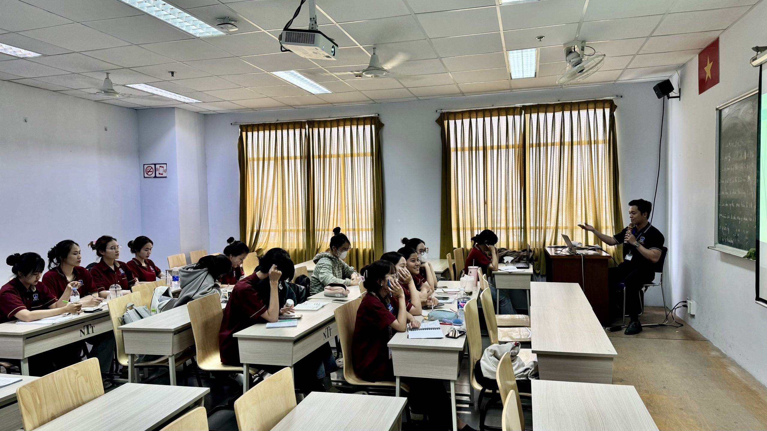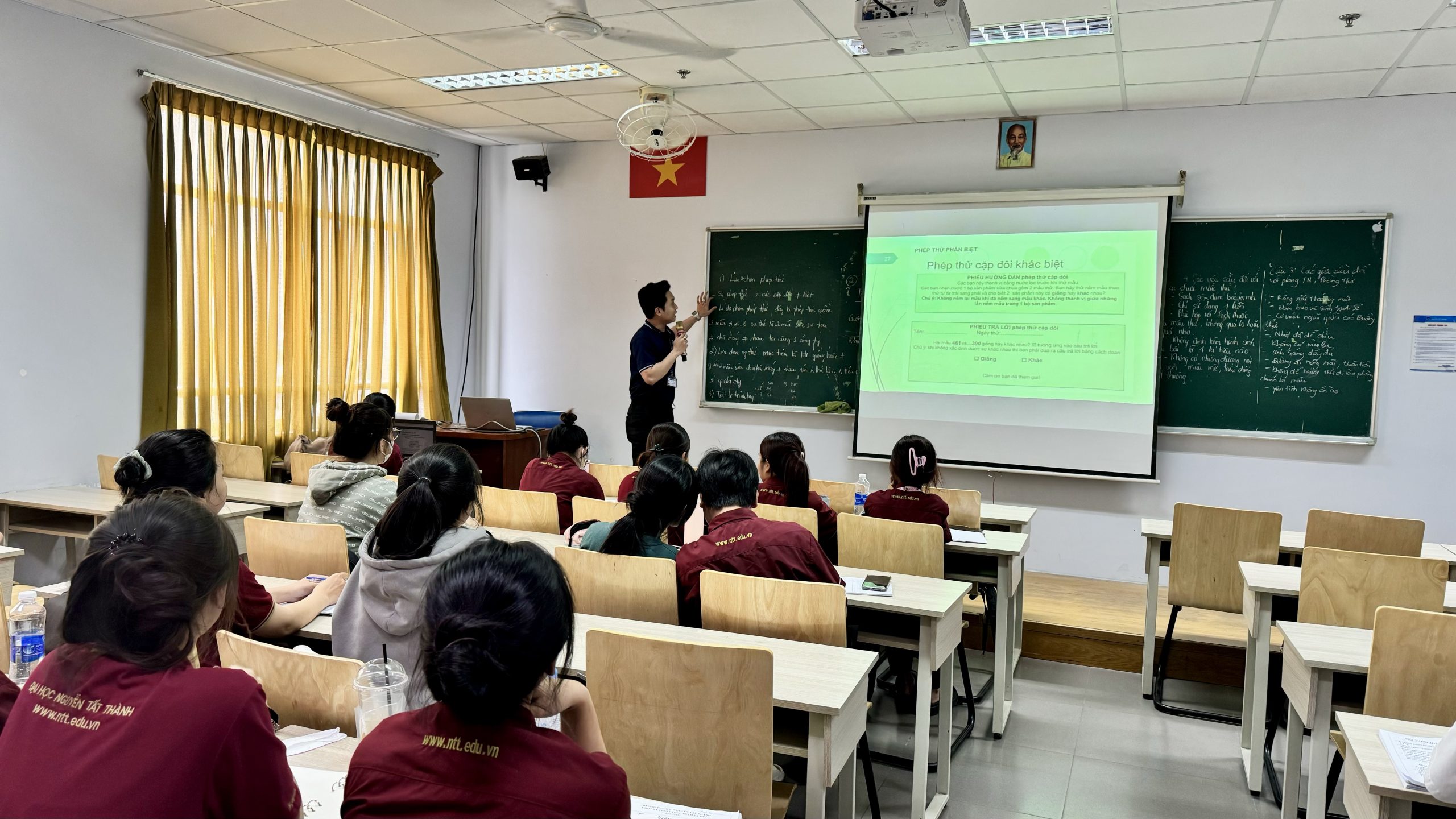 Buổi dự giờ diễn ra vào tiết 8 (13h50) tại phòng L.805A thuộc cơ sở 331 Quốc lộ 1A, Phường An Phú Đông, Quận 12, Tp. Hồ Chí Minh. Học phần giúp mở rộng kiến thức về phương pháp khoa học cảm quan, sử dụng để phân tích và giải thích cảm nhận của con người đối với các sản phẩm thông qua 5 giác quan cơ bản. Thêm vào đó, sinh viên được bồi dưỡng kiến thức chuyên sâu về các phép thử trong học phần đánh giá cảm quan. Qua đó có thể áp dụng những kiến thức đã học vào thực tế khi thực hiện khóa luận tốt nghiệp hoặc làm việc tại các công ty có liên quan đến sản xuất – chế biến thực phẩm. Nội dung bài học tại buổi dự giờ bao gồm phần trình bày về những ứng dụng thực nghiệm và làm bài tập thực tế về các phép thử phân biệt, mô tả và thị hiếu trong đánh giá cảm quan.