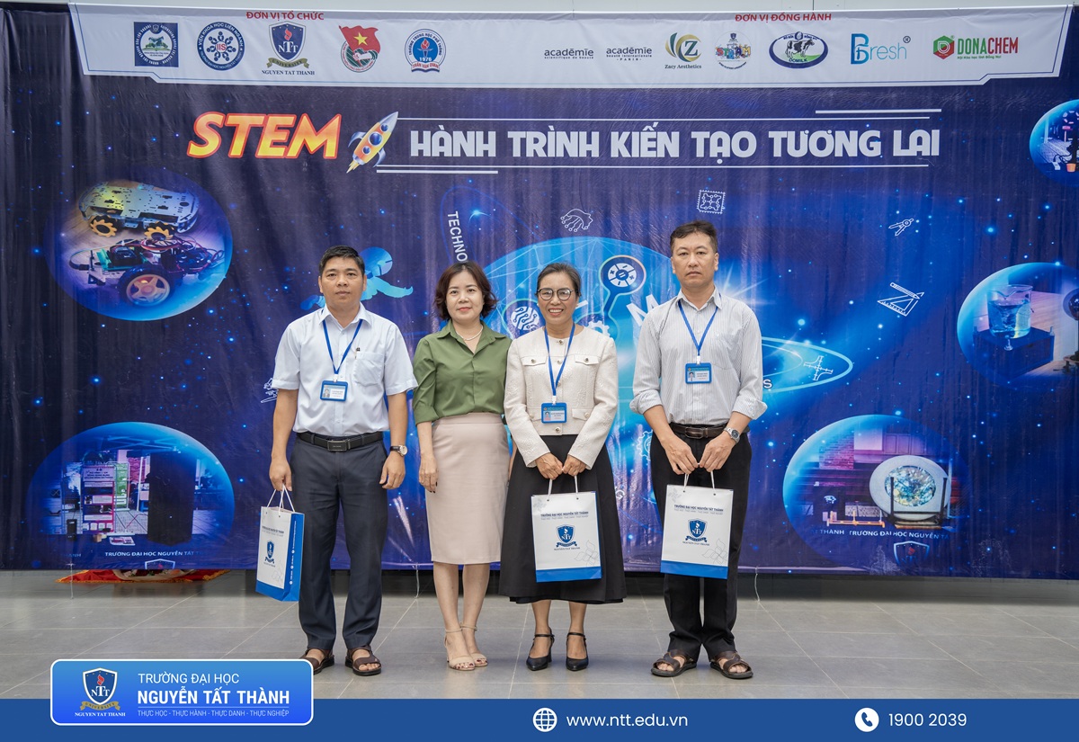 Ngày hội vinh dự chào đón ThS. Nguyễn Thị Phương Tú – Tổ trưởng Tổ Nghiên cứu và Phát triển Giáo dục STEM, Viện Khoa học Liên ngành; ThS. Nguyễn Thị Bích Ngọc – Phó Trưởng phòng Truyền thông, TS. Nguyễn Thị Nhã – Phó Trưởng Khoa Khoa Khoa học Ứng dụng và Công nghệ, cùng đội ngũ giảng viên, chuyên viên Trường Đại học Nguyễn Tất Thành; đại diện doanh nghiệp; quý thầy cô và toàn thể học sinh Trường THPT Trần Văn Quan. Sự tham gia đông đủ thể hiện sự quan tâm mạnh mẽ của nhà trường và các đơn vị đối tác đối với công tác giáo dục khoa học – công nghệ cho thế hệ trẻ.