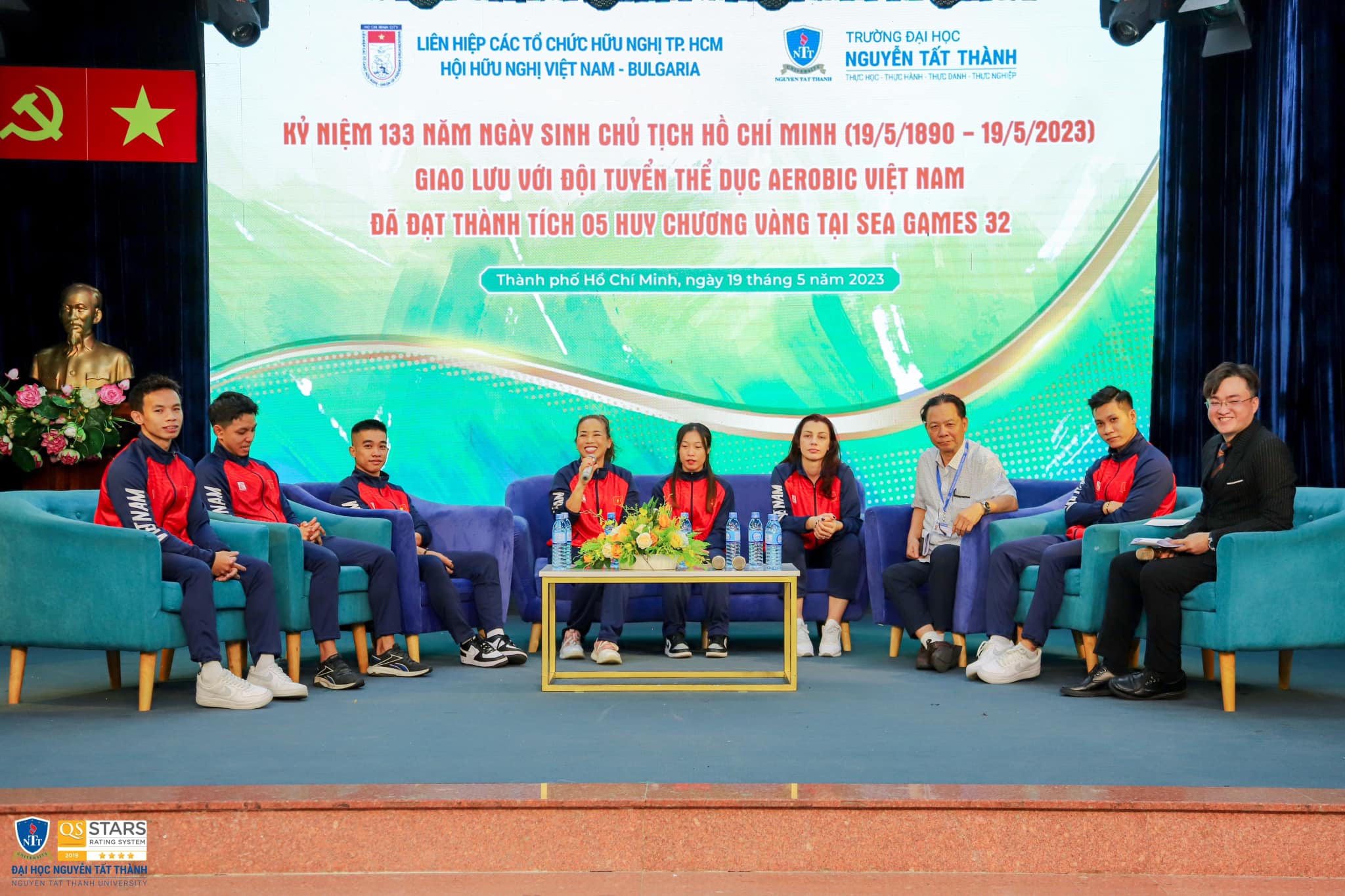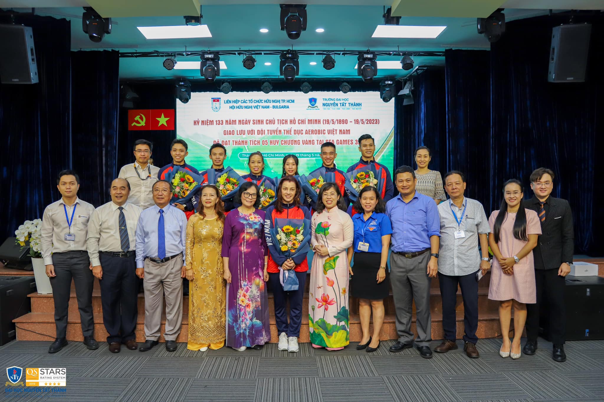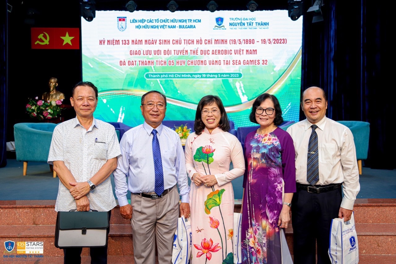 Chiều 19/5, Liên hiệp các tổ chức hữu nghị TPHCM phối hợp Hội Hữu nghị Việt Nam – Bulgaria TPHCM và Trường Đại học Nguyễn Tất Thành tổ chức chương trình kỷ niệm 133 năm ngày sinh Chủ tịch Hồ Chí Minh (19/5/1890 – 19/5/2023) và giao lưu với Ban huấn luyện, các vận động viên đội tuyển thể dục Aerobic Việt Nam sau kỳ SEA Games 32 thành công rực rỡ vừa qua.